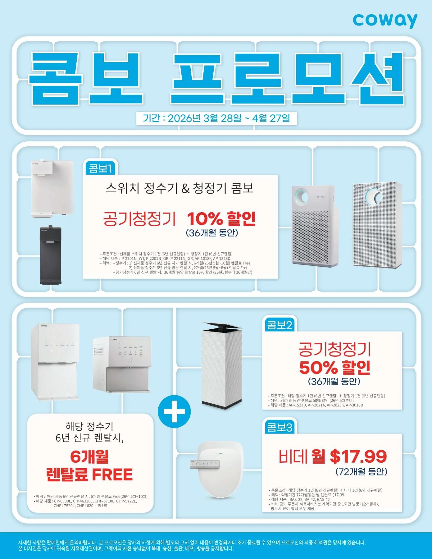 1. 신제품 정수기 + 공기청정기 실속 콤보 프로모션